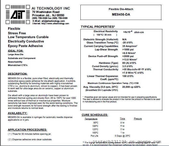 - AiT美国柔性单组份环氧芯片粘接导电银胶ME8456-DA